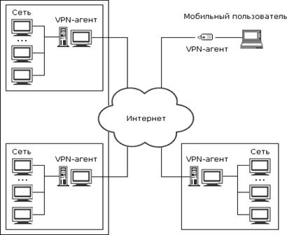 Все перечисленные операции выполняются автоматически, работа VPN-агентов является незаметной для пользователей. Сложной является только настройка VPN-агентов, которая может быть выполнена только очень опытным пользователем. VPN-агент может находиться непосредственно на защищаемом компьютере (что особенно полезно для мобильных пользователей). В этом случае он защищает обмен данными только одного компьютера, на котором он установлен.